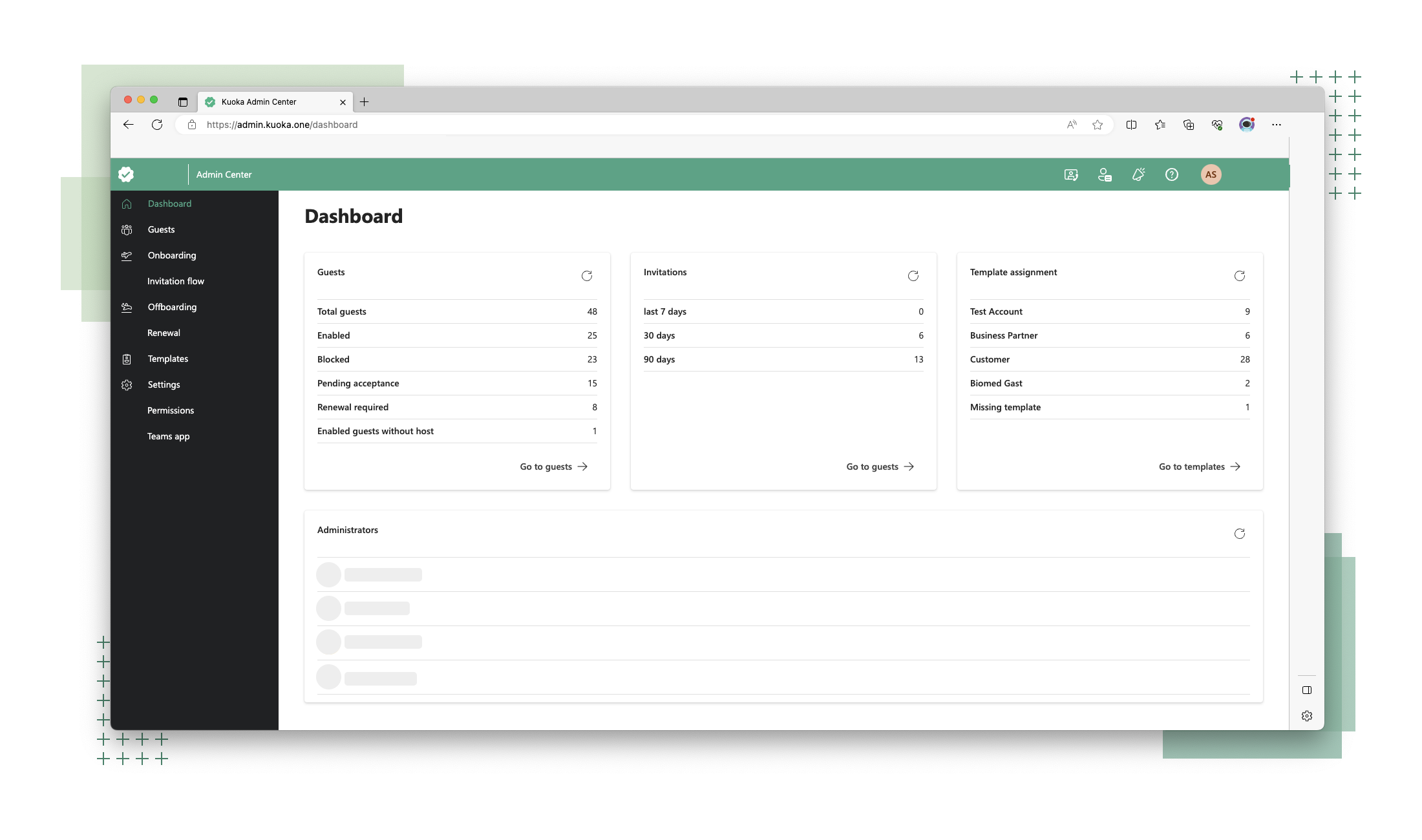 For Microsoft 365 administrators If you are a Microsoft 365 Admin and new to Guests, we recommend visiting the Gettings Started section. This section will guide you through the initial setup and help you get familiarized with the platform. For a deeper understanding of the available features and configuration options, please explore the admin center section.