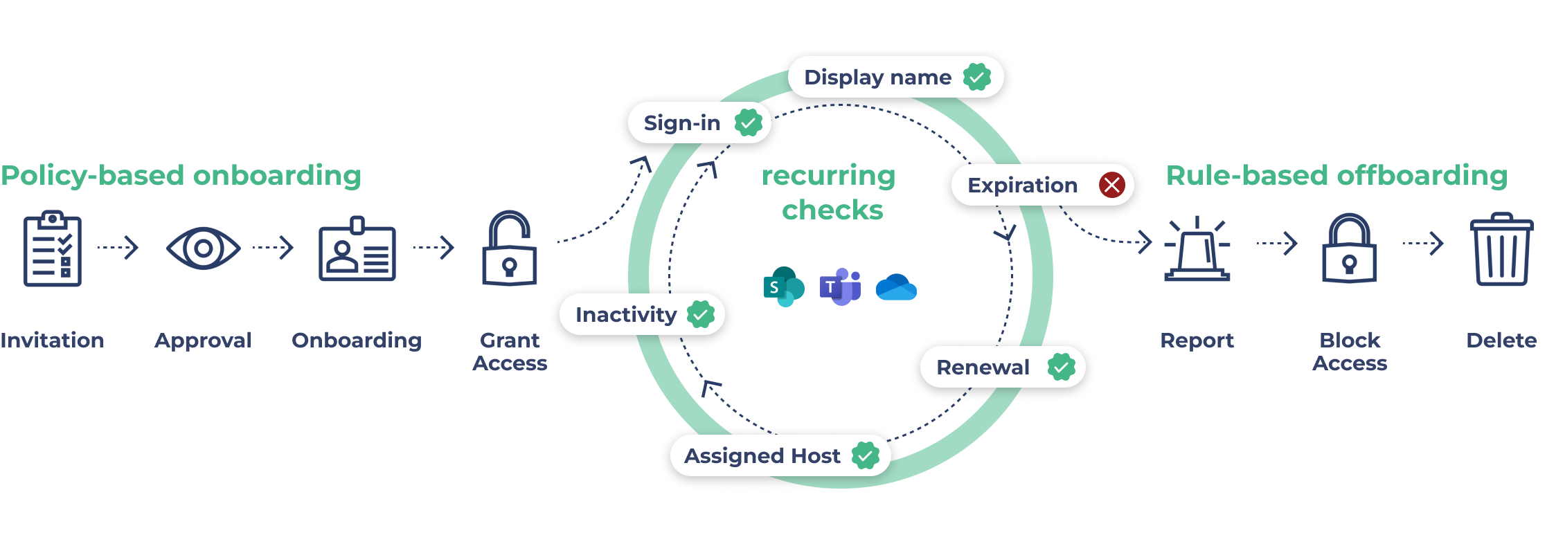 Guests is a guest management software for Microsoft Teams. It empowers users to take care of their guests while automatically complying with their company's policies for invitation, collaboration, and automatic removal.