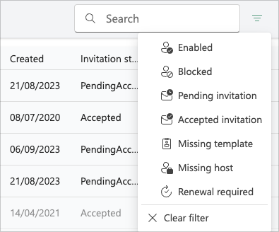 After creating an invitation flow, a renewal policy, and attaching them to a template, you are now ready to start evaluating guest accounts under Guest in the admin center and to initiate a cleanup.